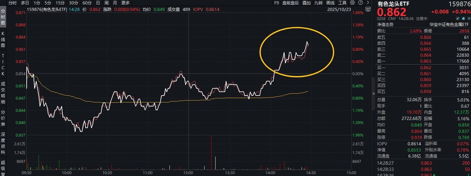 今日(10月23日)揽尽有色金属行业龙头的有色龙头ETF(159876)午后冲出水面以上,场内价格盘中拉升1%配资平台推荐,现涨0.94%。成份股方面,盛新锂能涨停,获主力资金净流入超9亿元,荣登A股吸金榜第三,中孚实业涨超4%,天山铝业涨近4%,雅化集团、西藏矿业等个股跟涨。